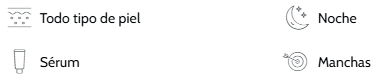 Tratamiento que combina tecnologías y activos despigmentantes y retexturizantes para proporcionar resultados rápidamente visibles llegando incluso a las capas más profundas de la piel. Formulado con RetinSphere® Technology, con alta concentración de retinoides, proporciona una intensa renovación epidérmica y una piel más lisa. La niacinamida y ácido tranexámico contribuyen a bloquear la formación de las manchas actuando en los diferentes mecanismos de la síntesis de melanina. EDAFENCE® protege frente a la polución, uno de los principales responsables de las manchas, y demás factores causados por el estrés ambiental. Su textura anhidra facilita la aplicación del producto, dejando un acabado imperceptible y tacto seco. Testado bajo control dermatológico.